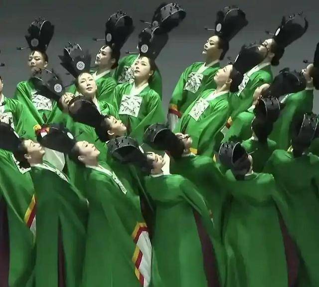 韩国舞团的《佾舞》,在抄袭过程中表现得极为敷衍。其服饰虽同为青绿色,但色调发灰发暗◇◁-,质感廉价粗糙▷■○,缺乏石青、石绿应有的厚重感○□;款式松松垮垮□●▷,舞动时显得拖沓笨重,无法呈现原版远山云雾的意境,反而显得杂乱邋遢◆▲。