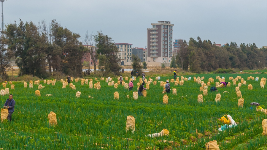 寒冬时节,福清市港头镇东光村的千亩农田里一片繁忙。福清市富源农业综合开发农民专业合作社创新试种的“大葱套种胡萝卜”模式,迎来了首批收获。拔出的胡萝卜色泽橙红、条形匀称,与田间保留的一排排绿葱相映成趣,勾勒出一幅生动的丰收画卷。