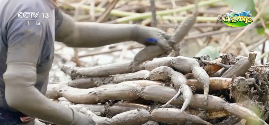 据了解,洪湖市莲藕年产量可达30万吨,当地正着力打造青泥巴藕、莲汁饮品、藕粉等地域名片,助力乡村振兴。