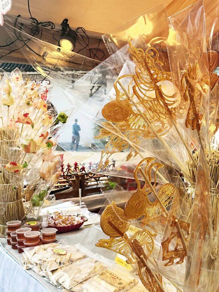 市集上“马”元素满满,带“马”字的春联、“马”主题的非遗文创整齐陈列,传递新春的美好祝福。糖画摊位前,师傅以铜勺为笔、糖浆为墨,现场勾勒出甜蜜的马年糖画,受到小朋友的喜爱。市民参与投壶、新年抽签、寻马打卡等互动活动还能累积印花,兑换5元、10元面值消费券,可在市集指定商户直接使用。